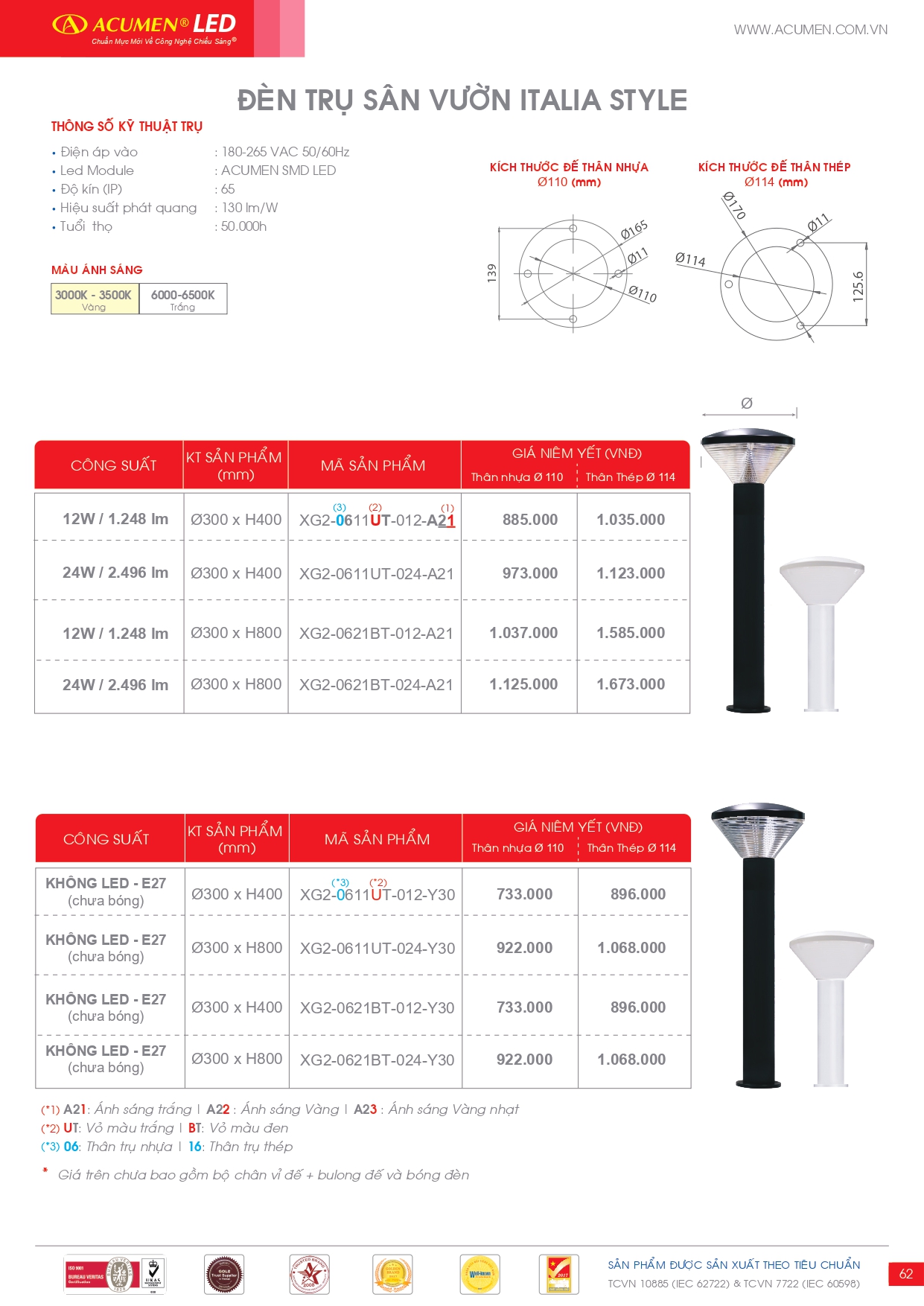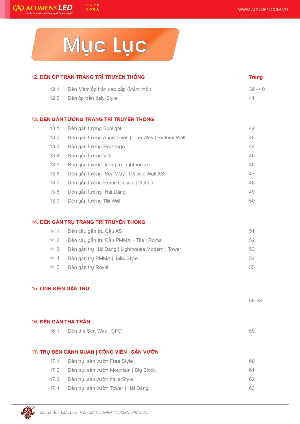 Catalogue, Catalogue Đèn chiếu sáng, Catalogue Đèn trang trí